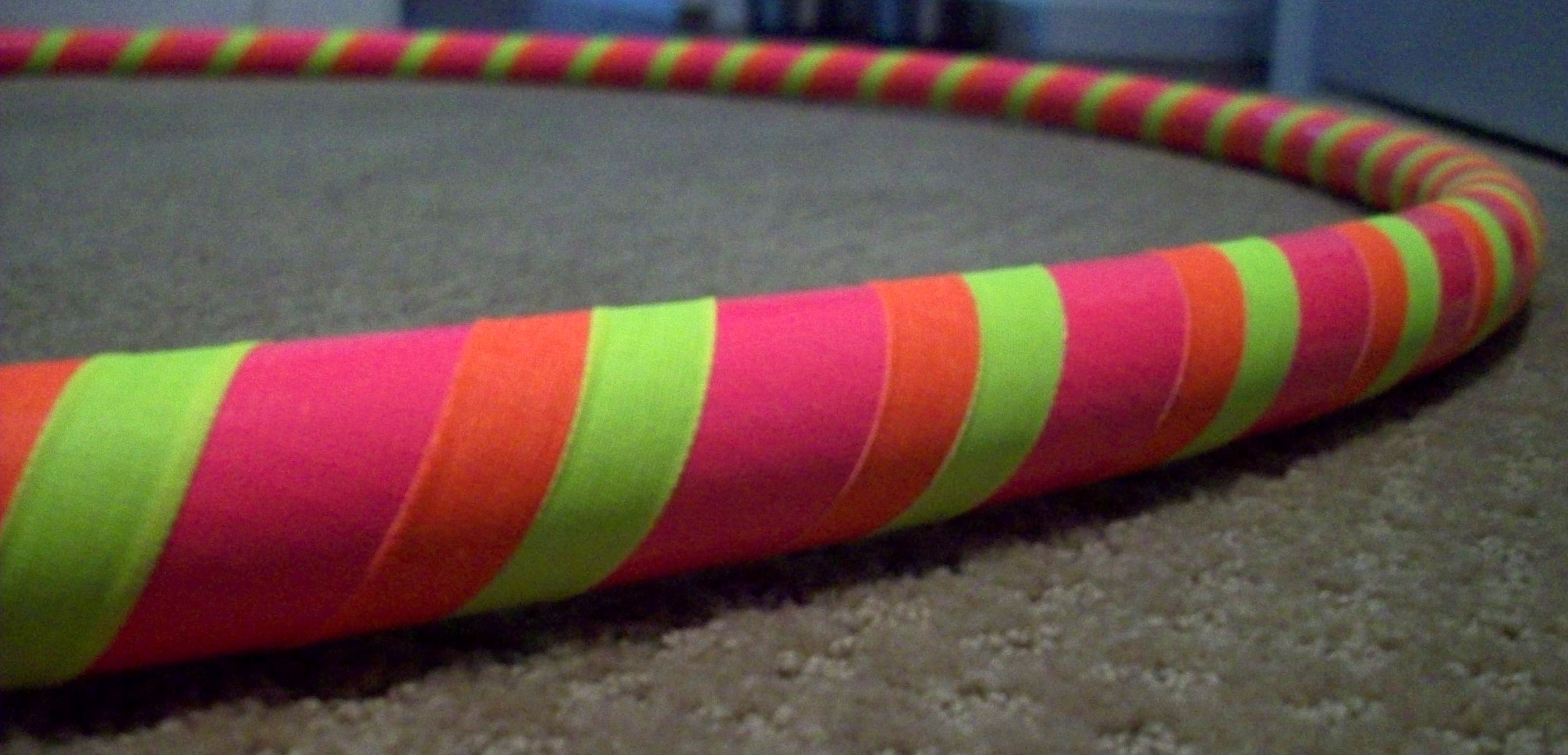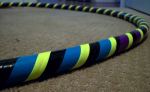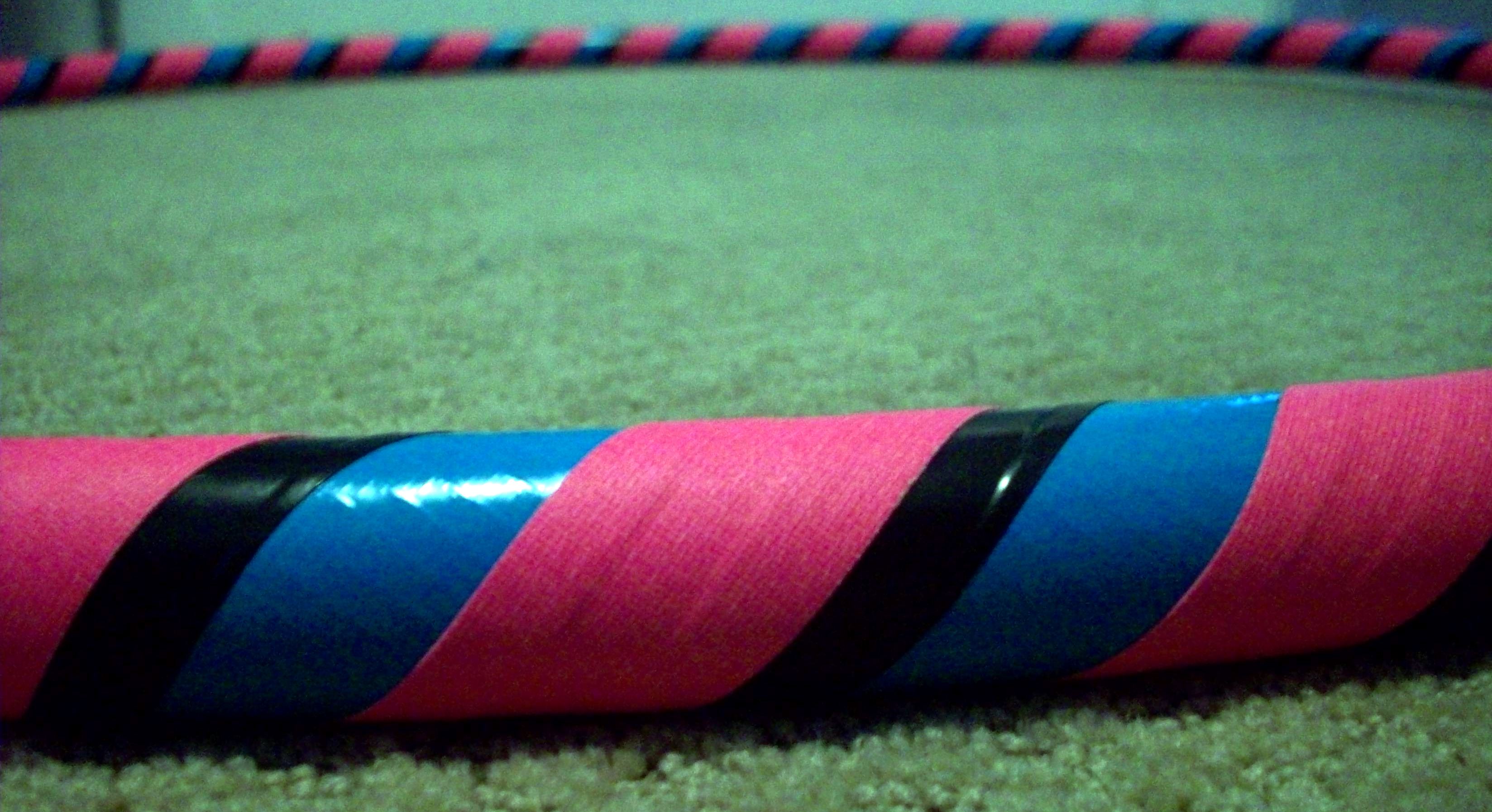 This one is made with blue vinyl tape and neon green 1 in. gaffer tape. Both this hoop and the purple/white one are made with 3/4 inch. 100 PSI tubing.