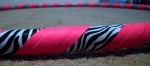 This hoop is 3/4 in. 100 PSI with purple duct tape, teal duct tape, zebra print duct tape, and black electric tape. Usually I don’t like to use so much duct tape on one hoop because the ends tend to get stringy or show the white from underneath when I cut it in half. But, since the zebra print tape is already white it helped to cover that up and the black vinyl tape covered the rest of the ugly ends. The only thing I don’t like about collapsible hoops is that you can’t cover the ends of the tubing and connectors with tape because the tubing has to be able to twist around the connector in order for it to collapse, leaving the grey connector exposed a bit.